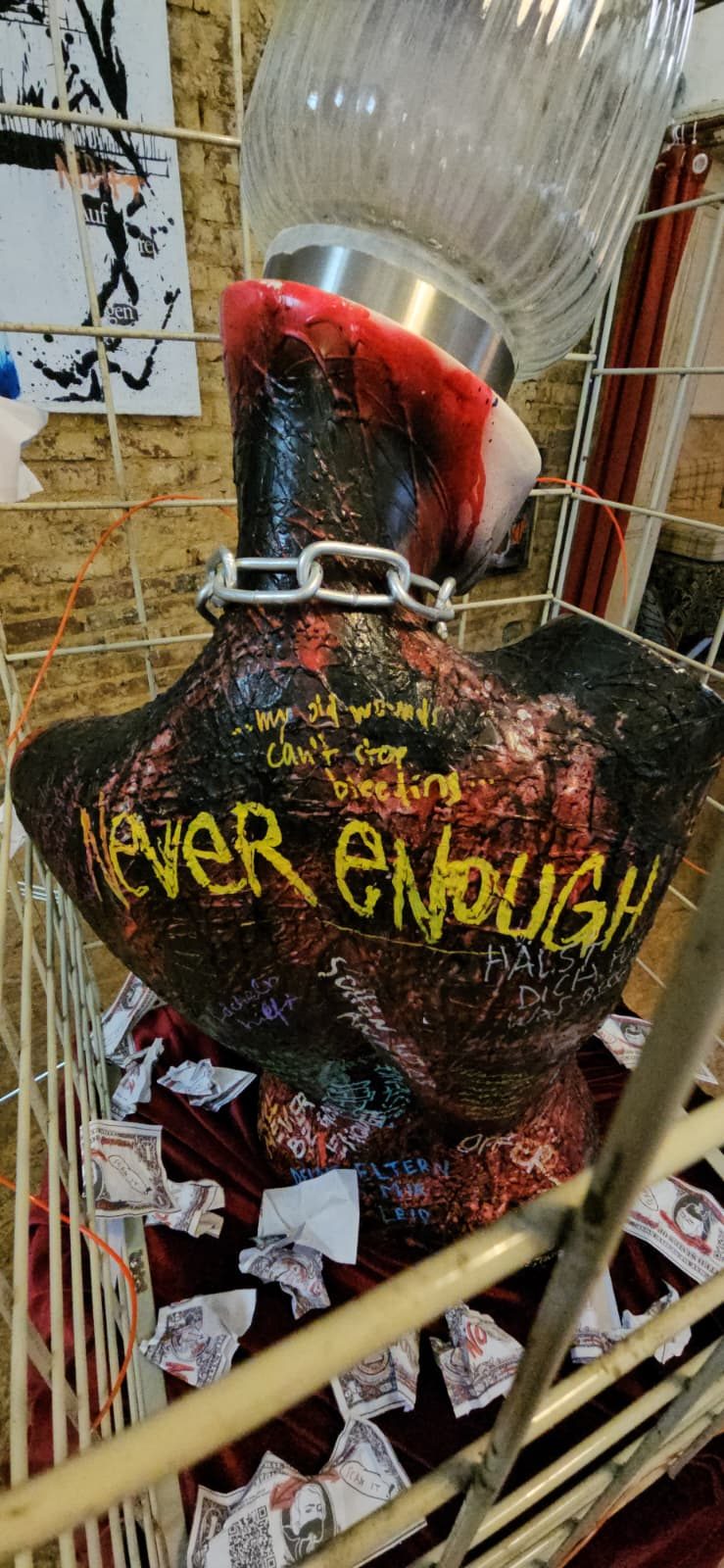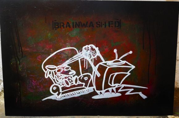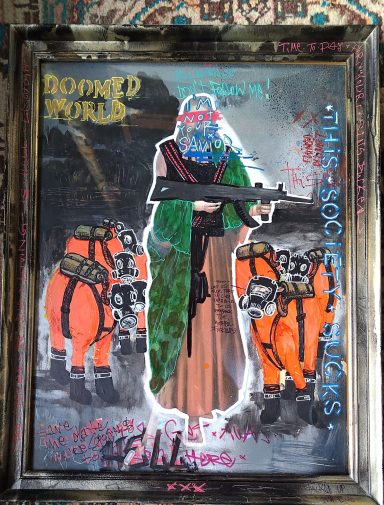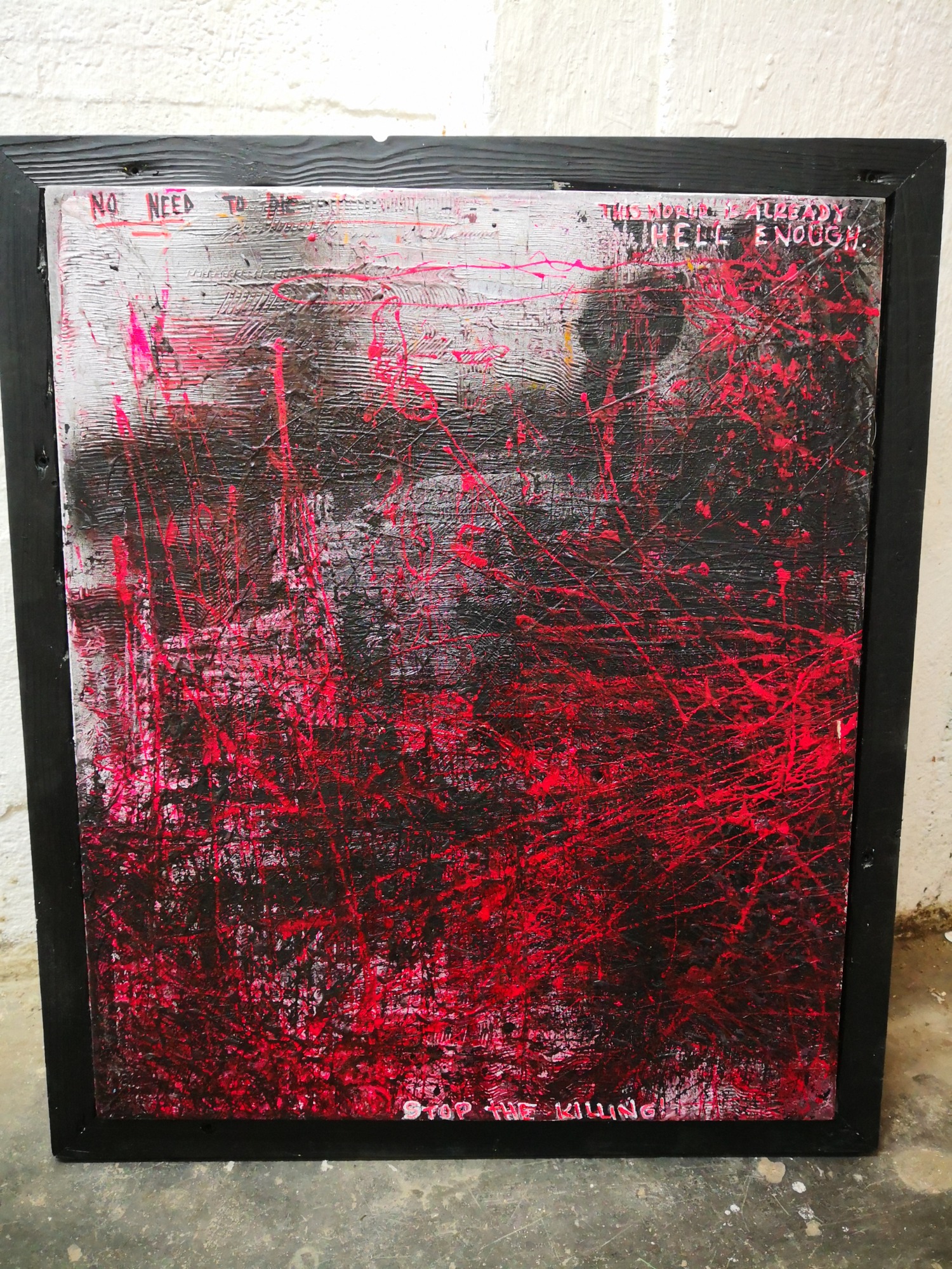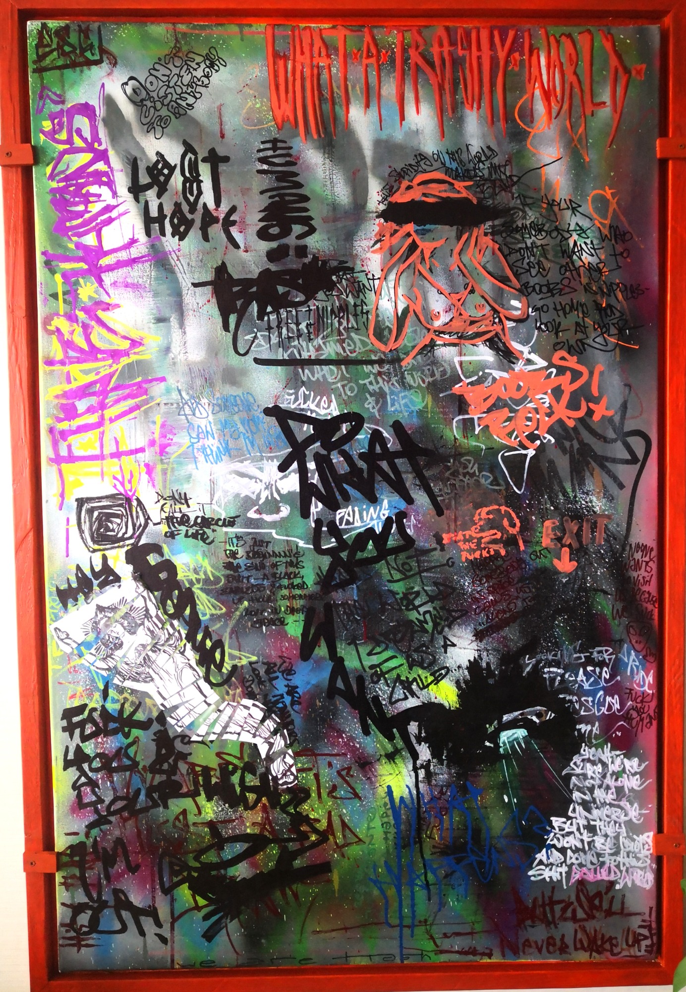 Eine roh-direkte Zustandsdiagnose. Die Arbeit verdichtet Frustration und Systemkritik zu einer visuellen Wutrede.