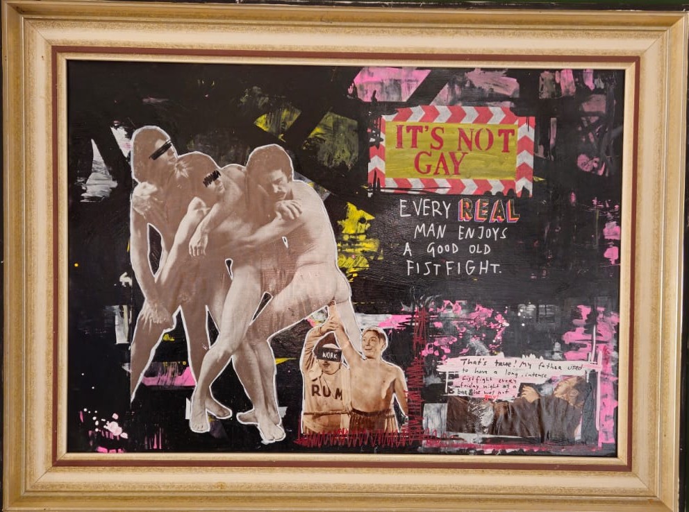 Eine provokante Collage über Männlichkeit, Gewalt und gesellschaftliche Doppelmoral. laut, unbequem und voller schwarzem Humor.