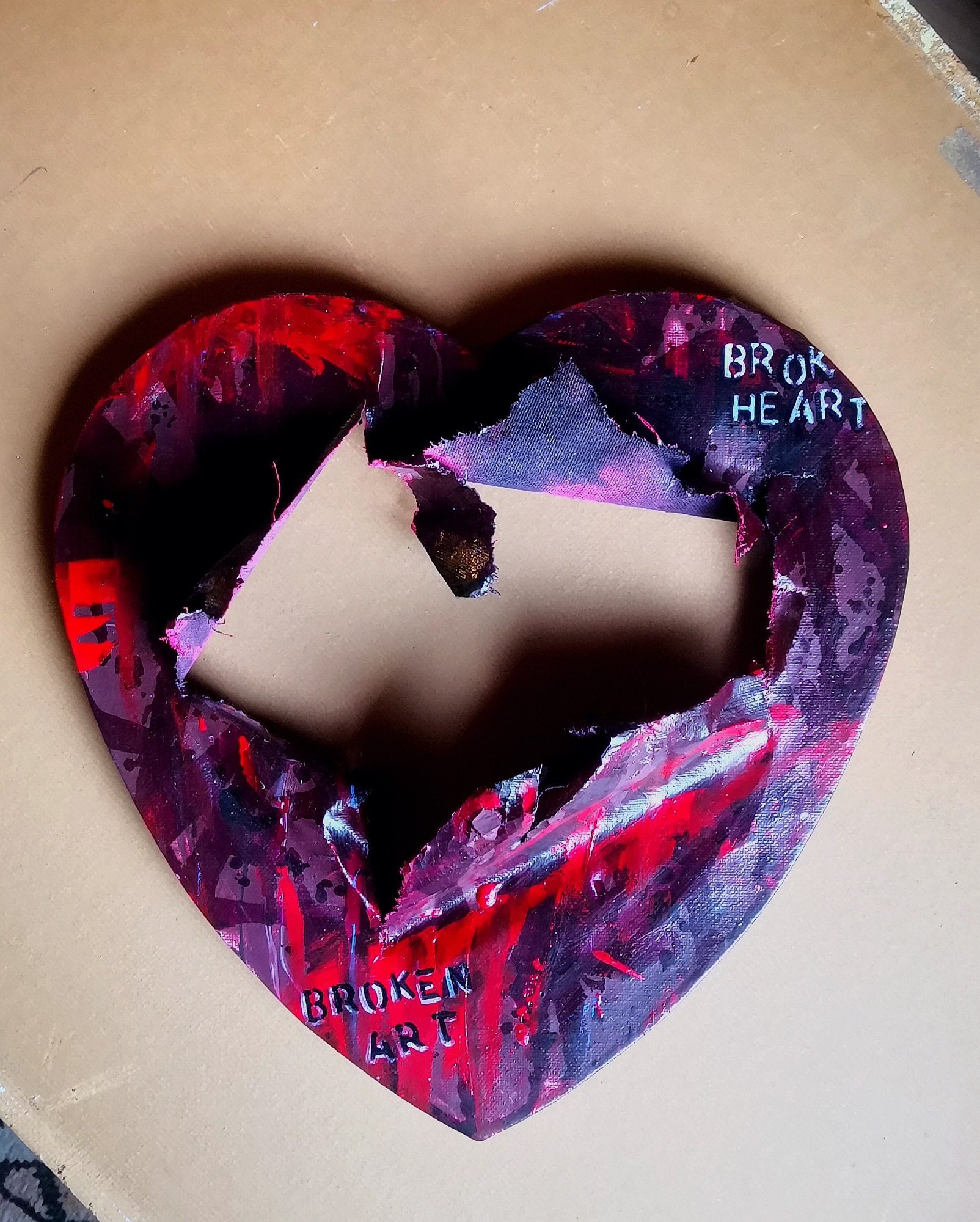 Zwischen Farbspuren und dem Schriftzug „Broken Heart“ wird Verletzlichkeit zur Kunst – roh, ehrlich und eindringlich.