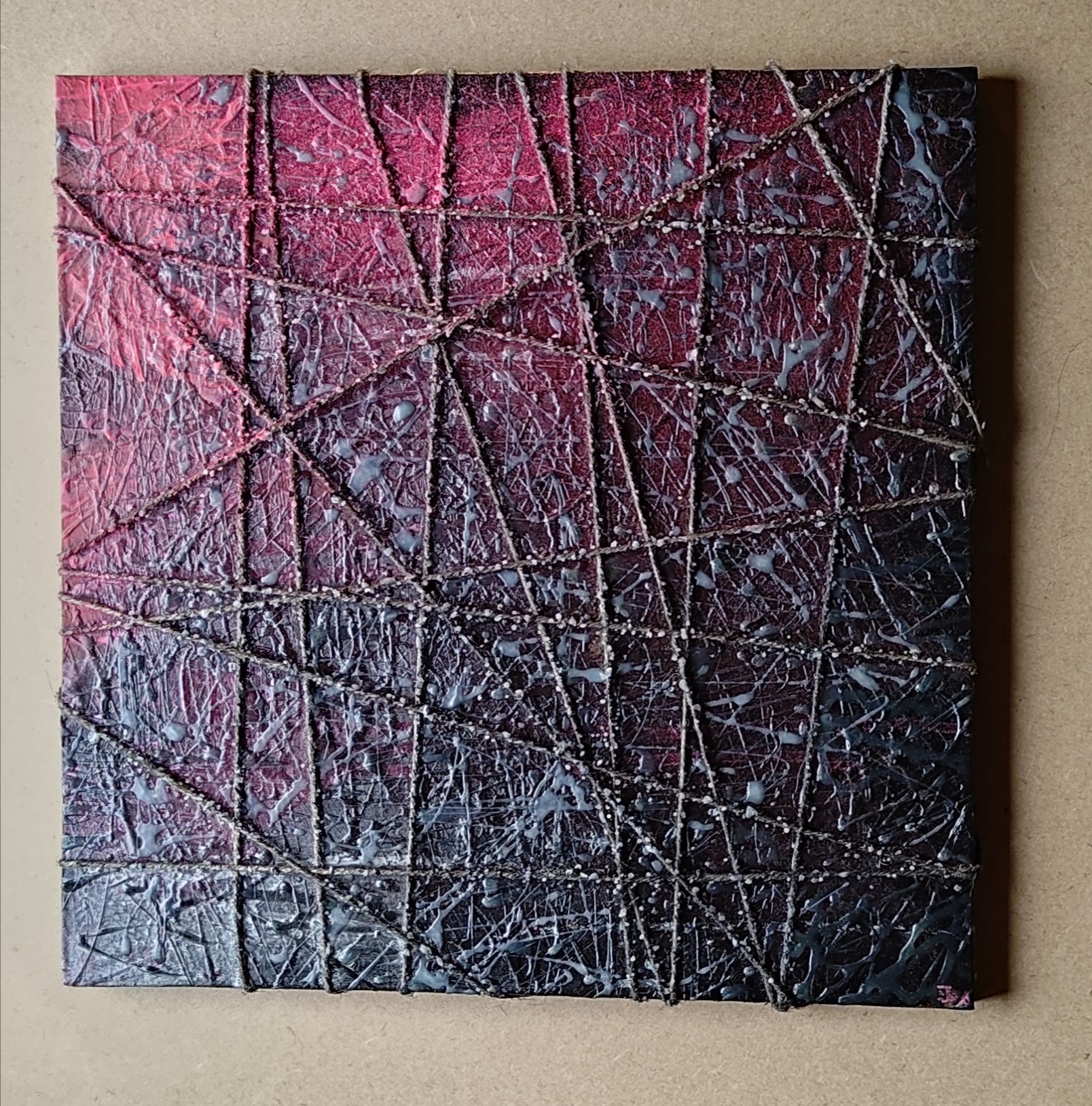 Die geometrische Struktur wirkt wie ein Netz aus Spannung und Bewegung – roh, modern und voller Tiefe.