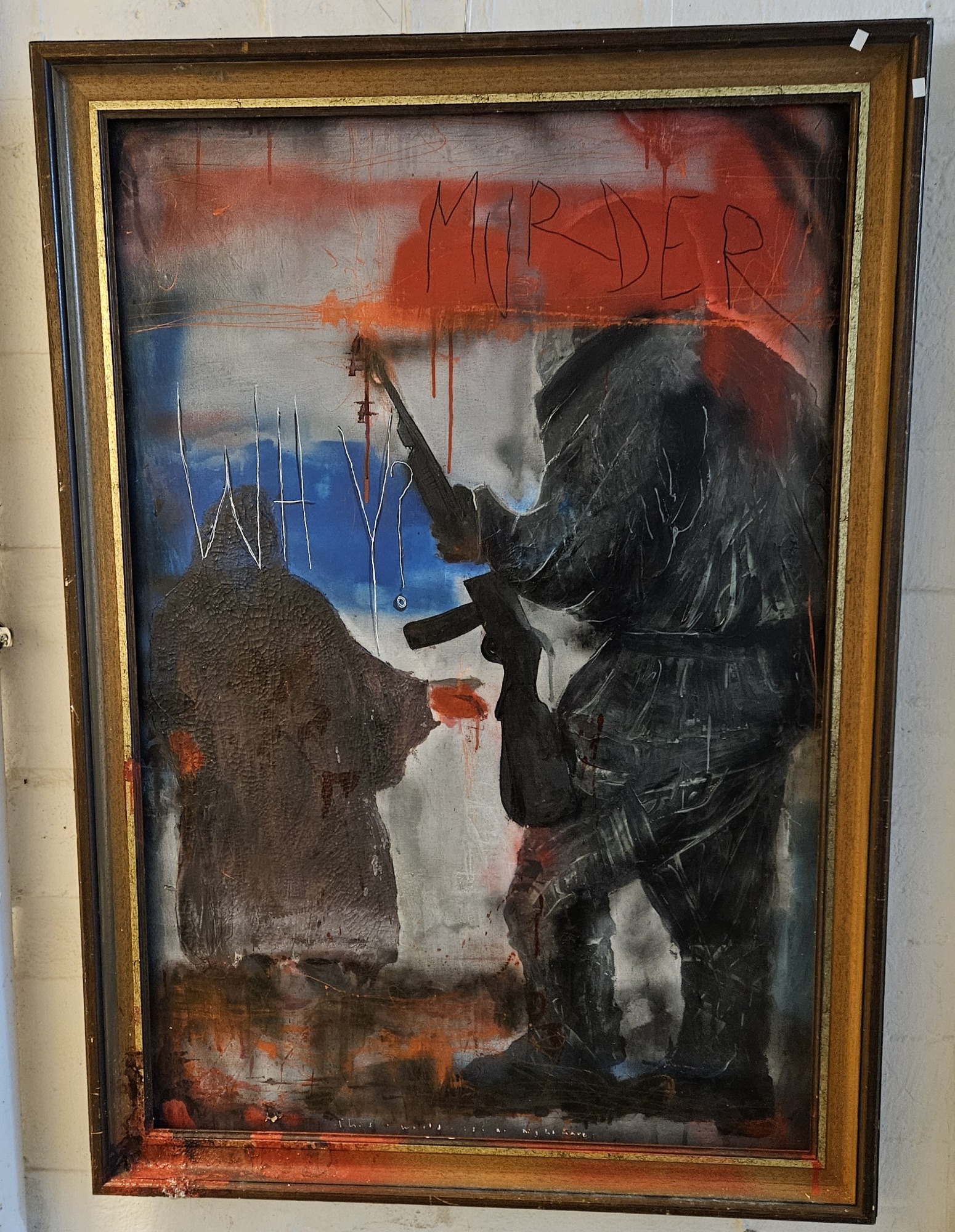 Ein düsteres, kompromissloses Werk über Gewalt und Ohnmacht. Ein visuelles Statement gegen Entmenschlichung; politisch, kritisch und roh.